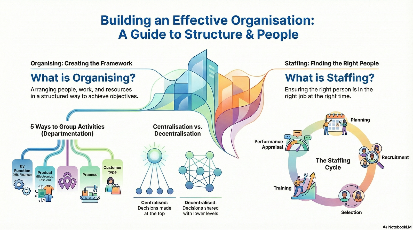 PPM Mind Map – Unit 3 & Unit 4 Short notes with examples for quick revision of Organizing, Staffing, Directing,