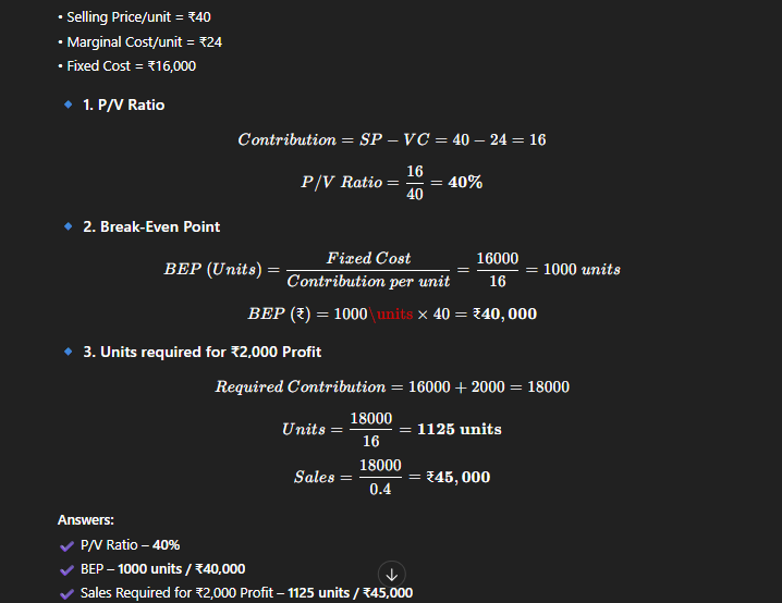 Sales to earn ₹2,000 profit = 1,125 units or ₹45,000