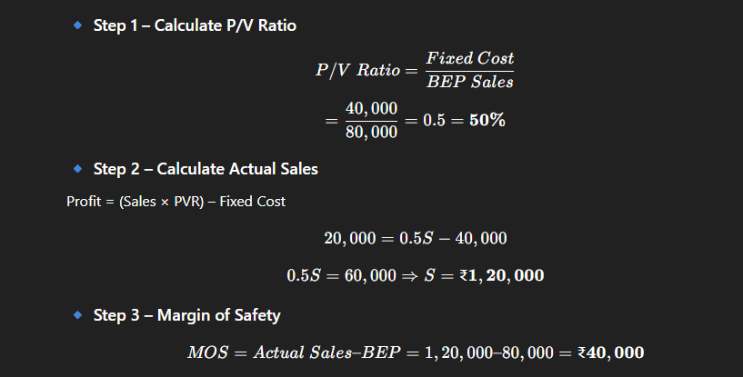 From the following information find out: (a) P/V Ratio (b) Sales (c) Margin of Safety